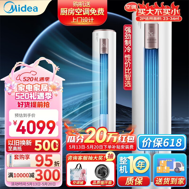 【新品】美的全面風(fēng)空調(diào)一級變頻家用3匹2匹立式客廳柜機(jī)官方旗艦