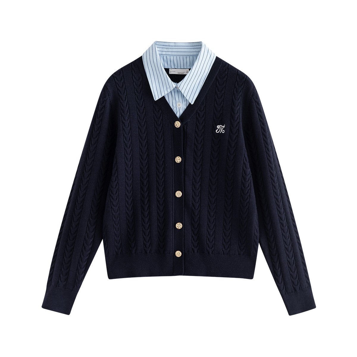 開襟衫,上衣的一種式樣。前面的部分全部分開,紐扣在胸前的叫對(duì)開襟,可分為有扣和無扣,面料一般為針織。開衫,將開襟衫敞開衣襟的一種穿衣方式,但往往習(xí)慣將開襟衫稱為開衫。注:本名詞內(nèi)容引自百度百科