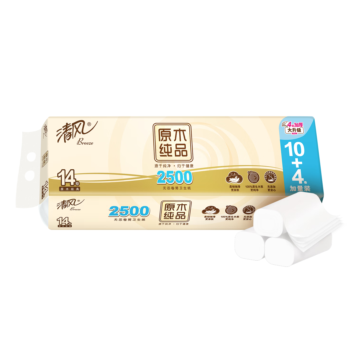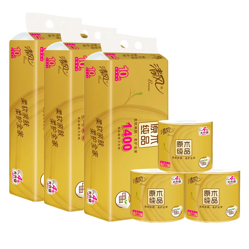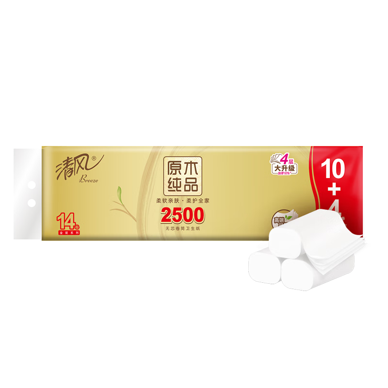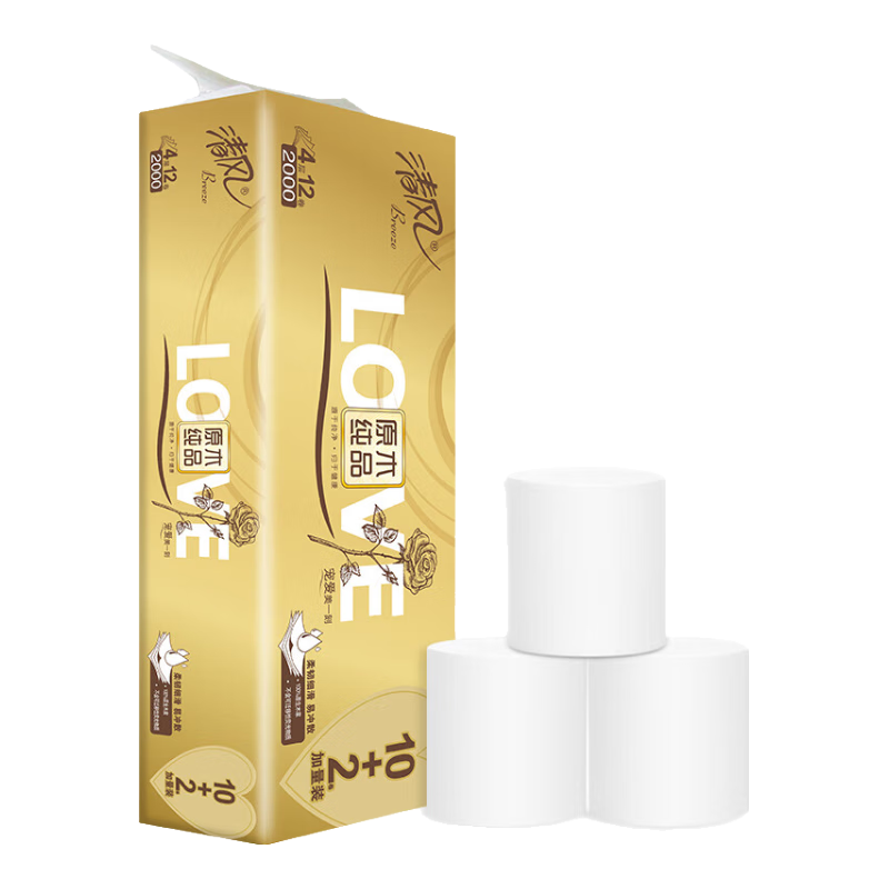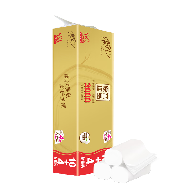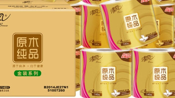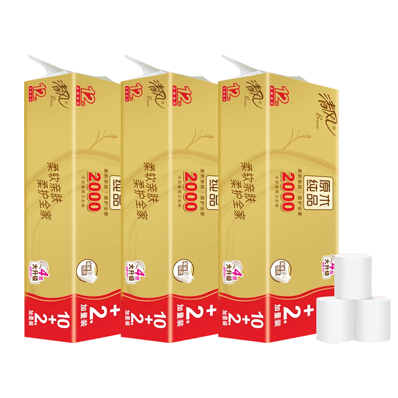 清風原木金裝卷紙:200克加厚4層