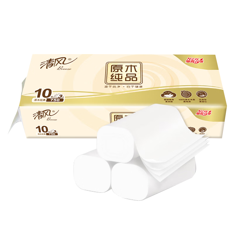 清風原木金裝卷紙,4層加厚耐用