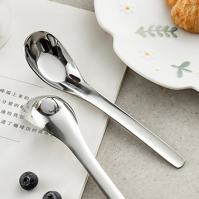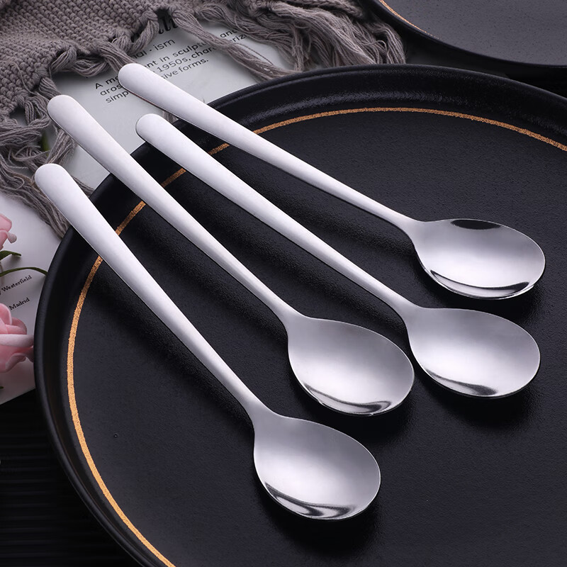 歐樂多(Olodo)德國316不銹鋼勺子長柄吃飯勺大號湯匙調(diào)羹咖啡攪拌勺韓式勺湯勺 304餐勺【本色鋼】長柄實
