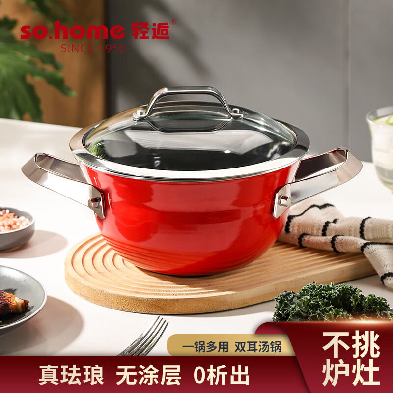 德國麥飯石微壓湯鍋不粘鍋家用電磁爐燃?xì)庠铍p耳燉鍋煲湯鍋蒸煮鍋
