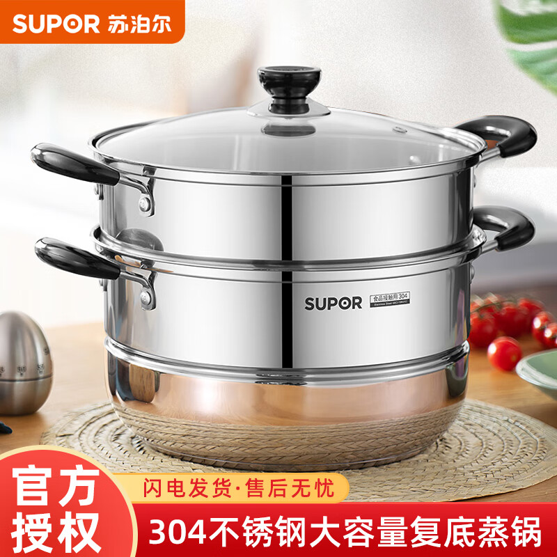 蘇泊爾(SUPOR) 蒸鍋304不銹鋼雙層復(fù)底湯鍋二層蒸籠