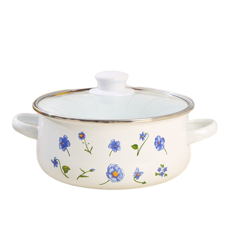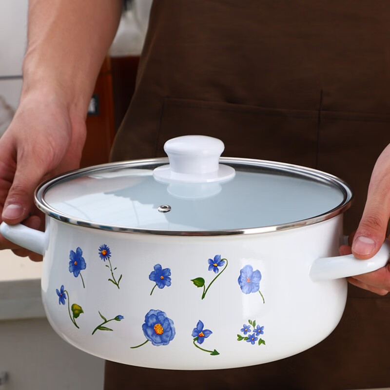 琺瑯涂層鑄鐵鍋,簡稱琺瑯鍋?,m瑯即搪瓷也叫琺瑯瓷,是涂燒在金屬底坯表面上的無機玻璃瓷釉。主要由高強度石英和長石等組成的硅酸鹽礦物質(zhì),對人體無任何毒副作用。在金屬表面進(jìn)行瓷釉搪可以防止金屬生銹,使金屬在受熱時不至于在表面形成氧化層,并且能抵抗各種液體的侵蝕,所以在使用琺瑯鍋烹煮食物的過程中,不會因為高溫而產(chǎn)生有害溶出物,而且抗酸堿能力好,不會和食物起化學(xué)反應(yīng)。鑄鐵鍋是由鐵和碳組成,天然的鑄鐵材料比一般金屬材料要重,是公認(rèn)的最優(yōu)質(zhì)的鍋具材料,具有導(dǎo)熱快而均勻、保溫好的優(yōu)點。而琺瑯鍋就是天然鑄鐵材料與高品位優(yōu)質(zhì)琺瑯的結(jié)合。注:本名詞內(nèi)容引自百度百科。