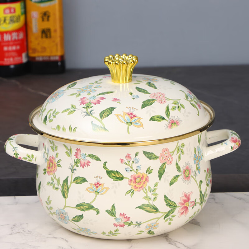 琺瑯搪瓷微壓湯鍋家用無(wú)涂層燉煮鍋雙耳鍋燃?xì)怆姶艩t通用2024新款