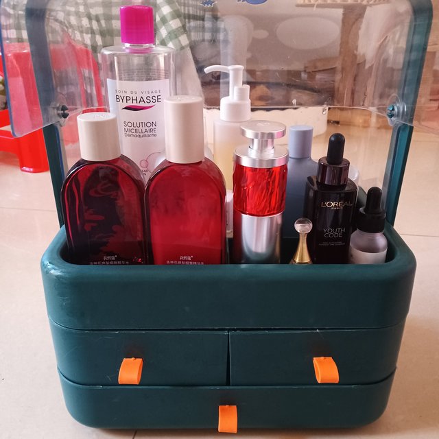 化妝品收納盒桌面口紅護(hù)膚品整理箱子梳妝臺抽屜大容量防塵置物架