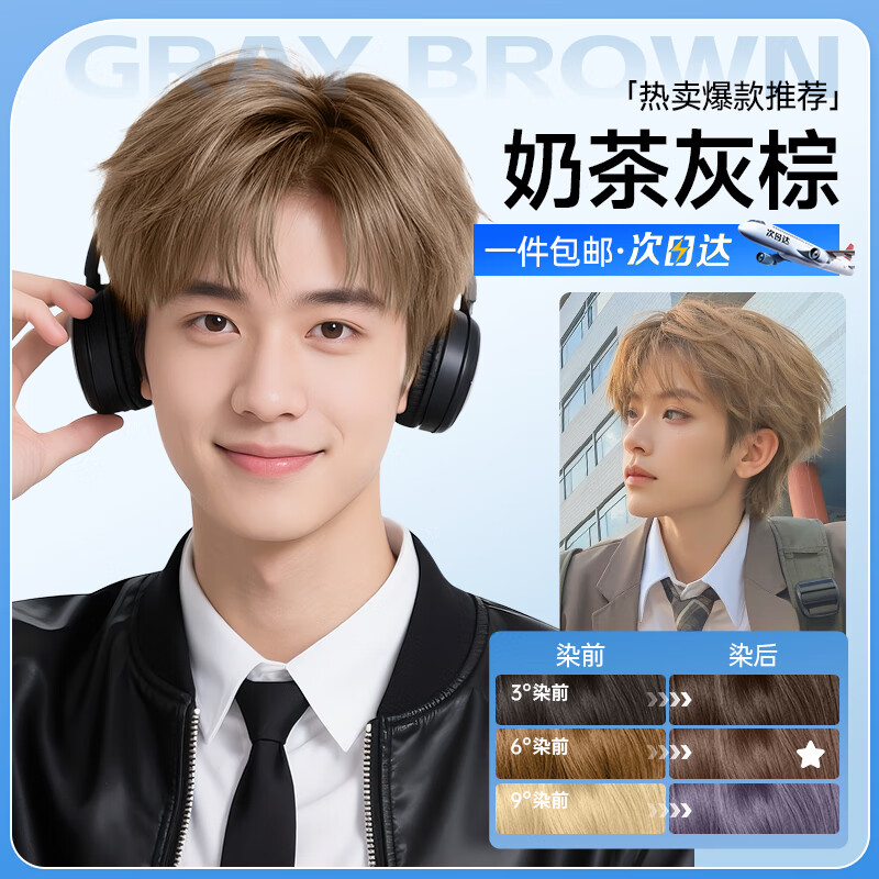 漢斯 HELLSE奶茶灰棕染發(fā)劑植物自己在家染發(fā)膏純蓋白頭發(fā)泡泡染頭發(fā)男女士