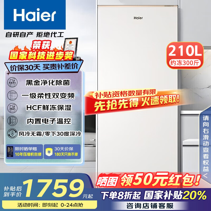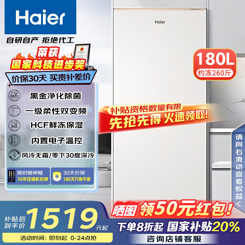 海爾142升低霜小冰柜,雙十一補貼速搶!
