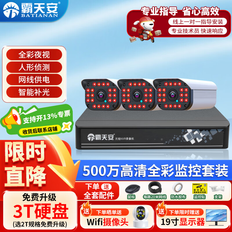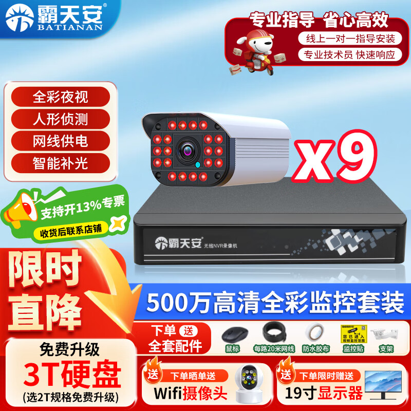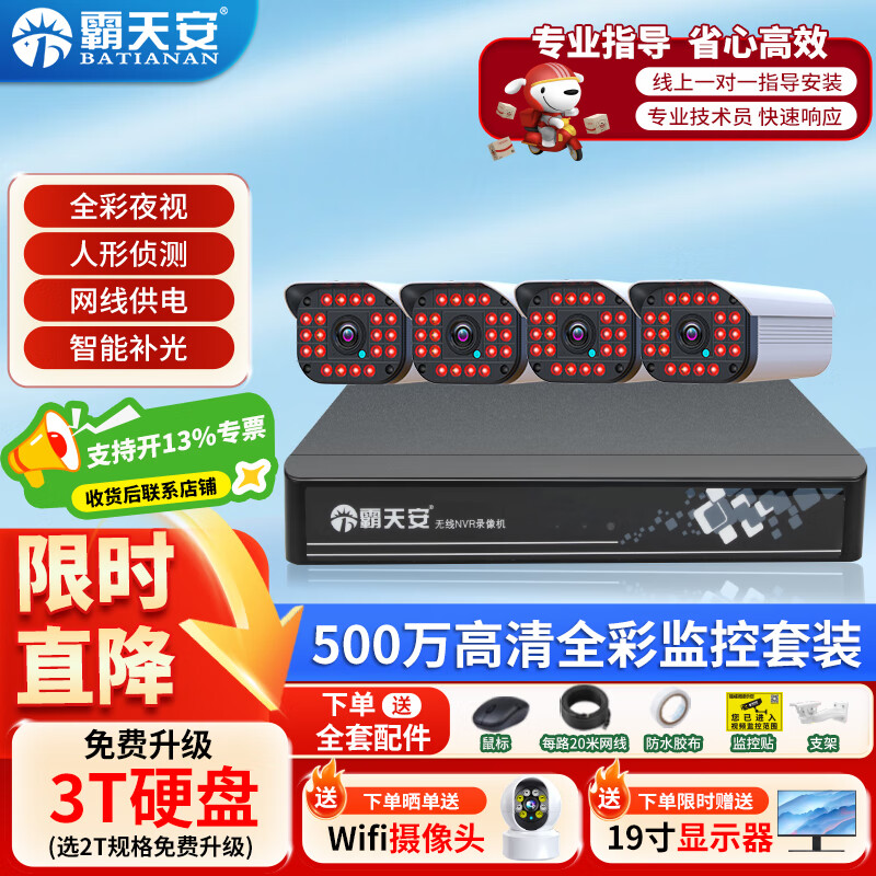 2659元霸天安500萬室外高清可夜視防盜報警器poe監(jiān)控攝像頭家用手機(jī)遠(yuǎn)程安防設(shè)備套裝別墅商用系統(tǒng)戶外監(jiān)控器槍 500萬10路套裝 配4T硬盤京東 10k