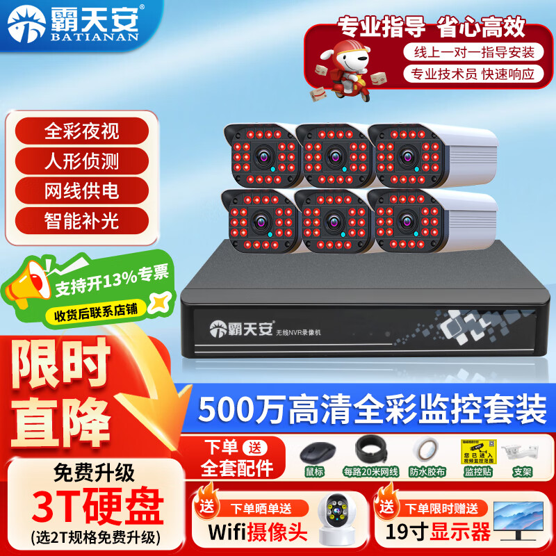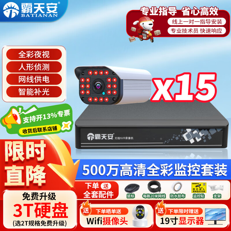 4149元霸天安500萬室外高清可夜視防盜報警器poe監(jiān)控攝像頭家用手機(jī)遠(yuǎn)程安防設(shè)備套裝別墅商用系統(tǒng)戶外監(jiān)控器槍 500萬16路套裝 配6T硬盤京東 10k