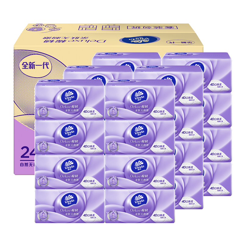 維達(Vinda)棉韌抽紙3層24包整箱裝立體美紙巾軟抽紙抽衛(wèi)生紙巾餐巾紙面巾紙 24包整箱