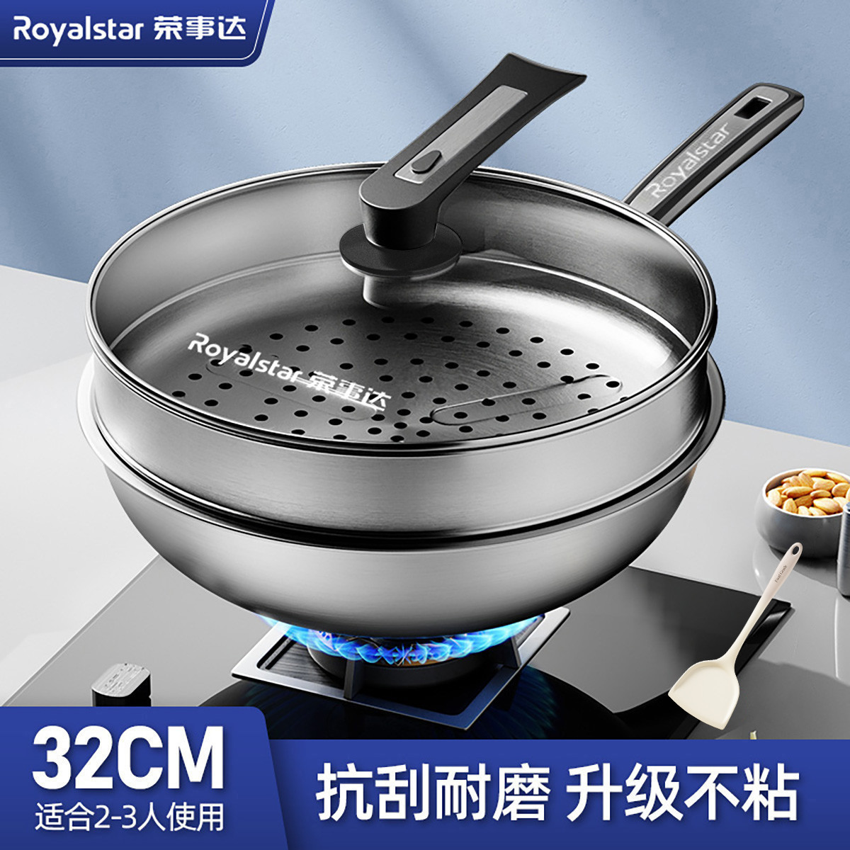 炊大皇 平底鍋 304不銹鋼煎鍋全面屏不粘鍋 可用鐵鏟 電磁爐通用28cm