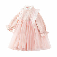 女童蕾絲連衣裙春秋裝新款洋氣兒童娃娃領(lǐng)公主裙小香風(fēng)長袖網(wǎng)紗裙