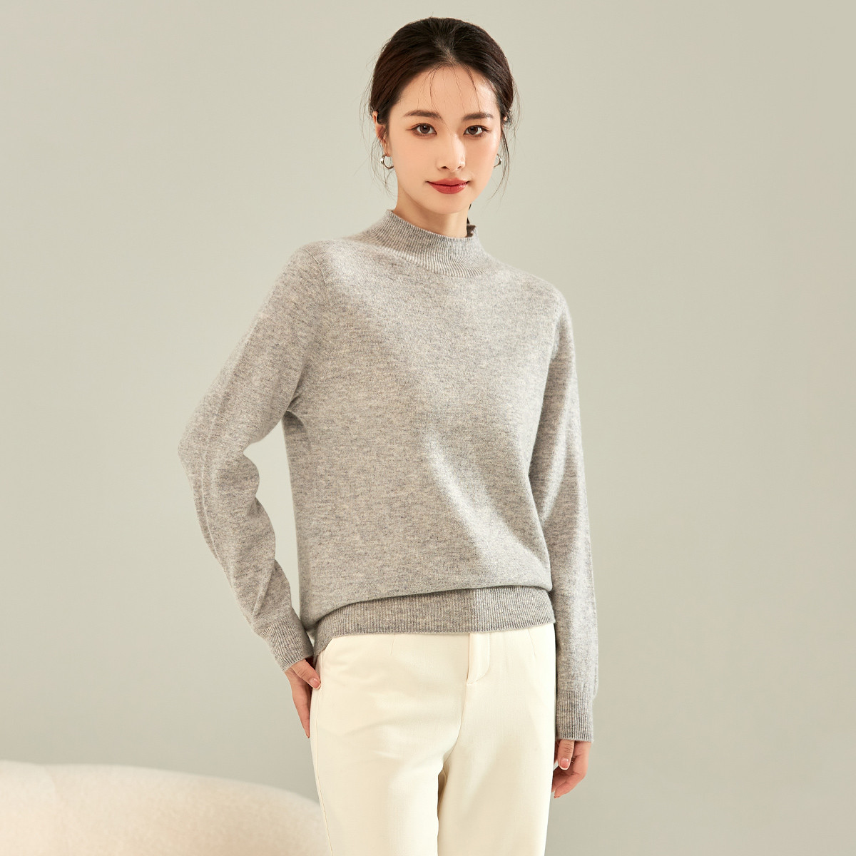 羊絨衫,是以山羊絨為原料針織而成的服裝。根據(jù)紗線類別分為粗紡針織和精紡針織兩種,根據(jù)原料比例可以分為純羊絨及羊絨混紡兩種。大眾款式多為“v”型領(lǐng)套頭衫、開衫、圓領(lǐng)套衫等。具有山羊絨本身的白、青、紫等天然色彩,也可染色。手感細(xì)軟、柔滑,有光澤,保暖性好,穿著舒適,但強(qiáng)度較差。
