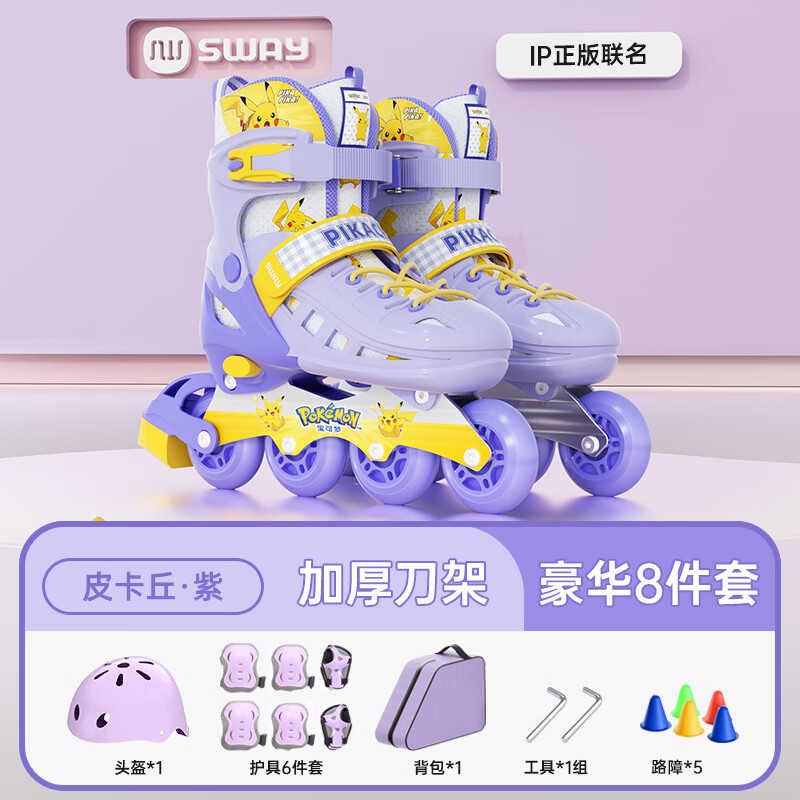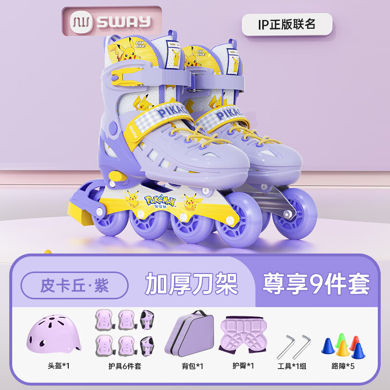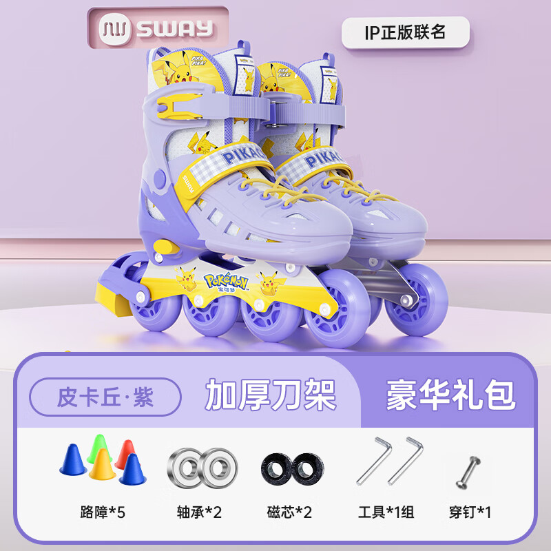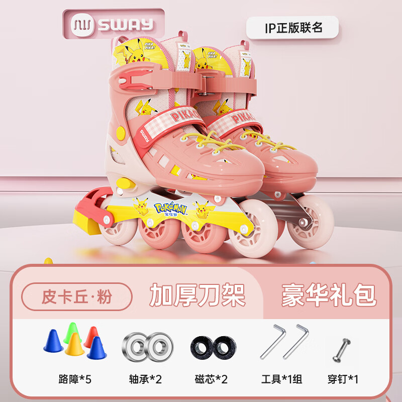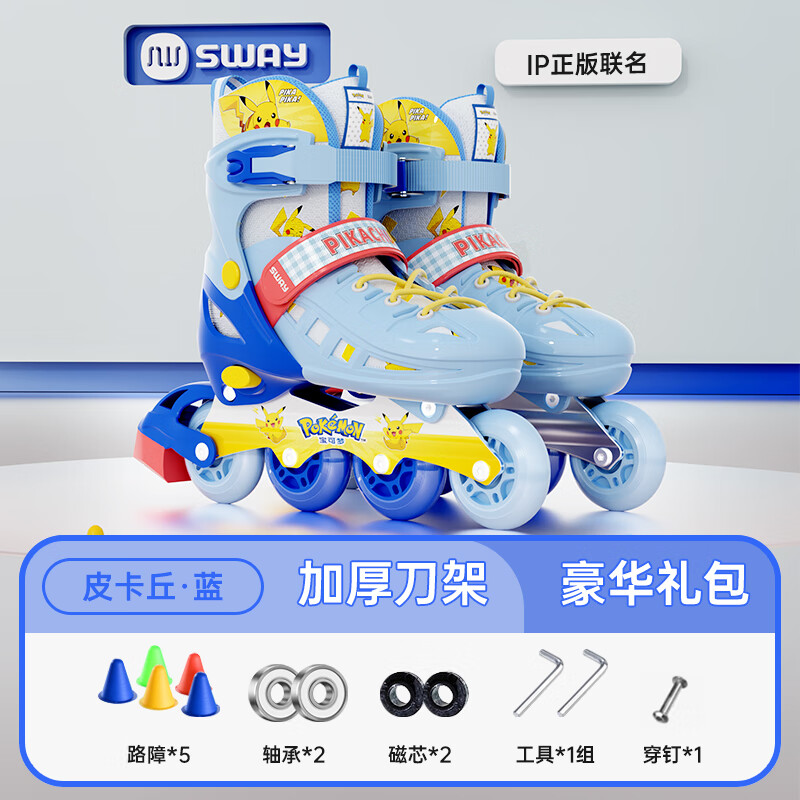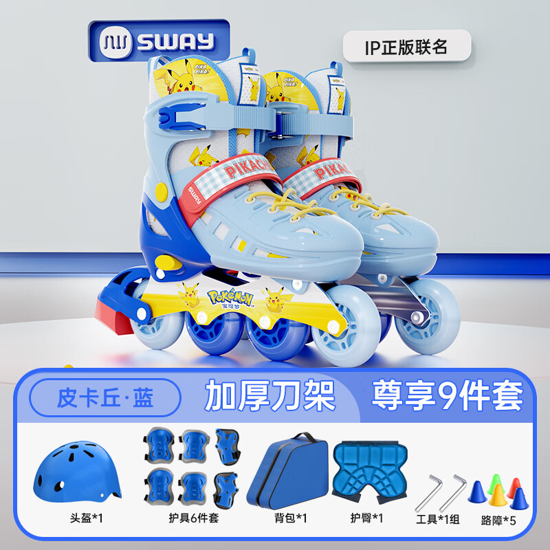 215元斯威(SWAY)皮卡丘輪滑鞋兒童初學(xué)者男女溜冰鞋可調(diào)尺碼成人直排滑輪旱冰鞋 藍(lán)皮卡丘【八閃 頭盔護(hù)具 護(hù)臀】 L (適合12歲-成人)日常鞋碼37-41京東 70