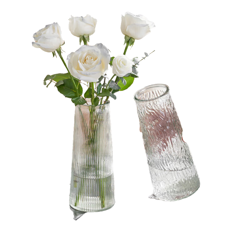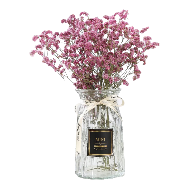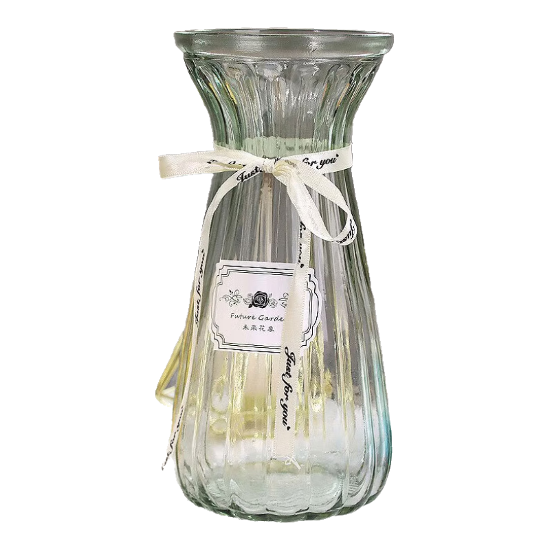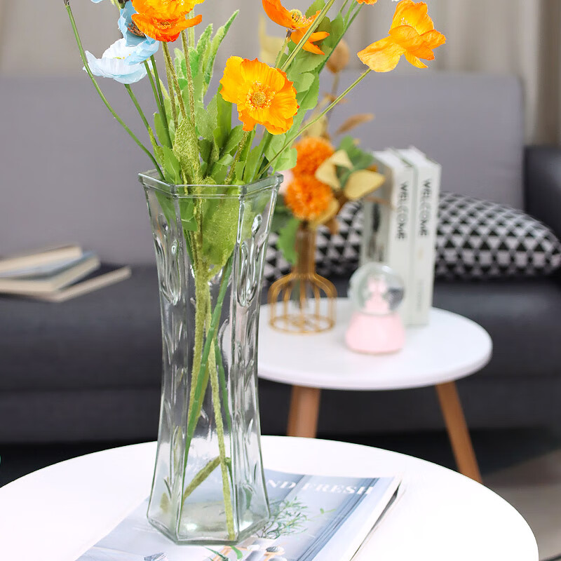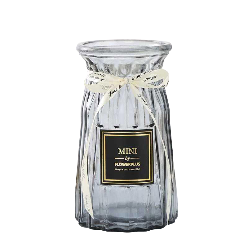 盛世泰堡 北歐玻璃花瓶插花瓶干花滿天星仿真花水培植物容器小花瓶客廳裝飾擺件 淡雅灰18cm