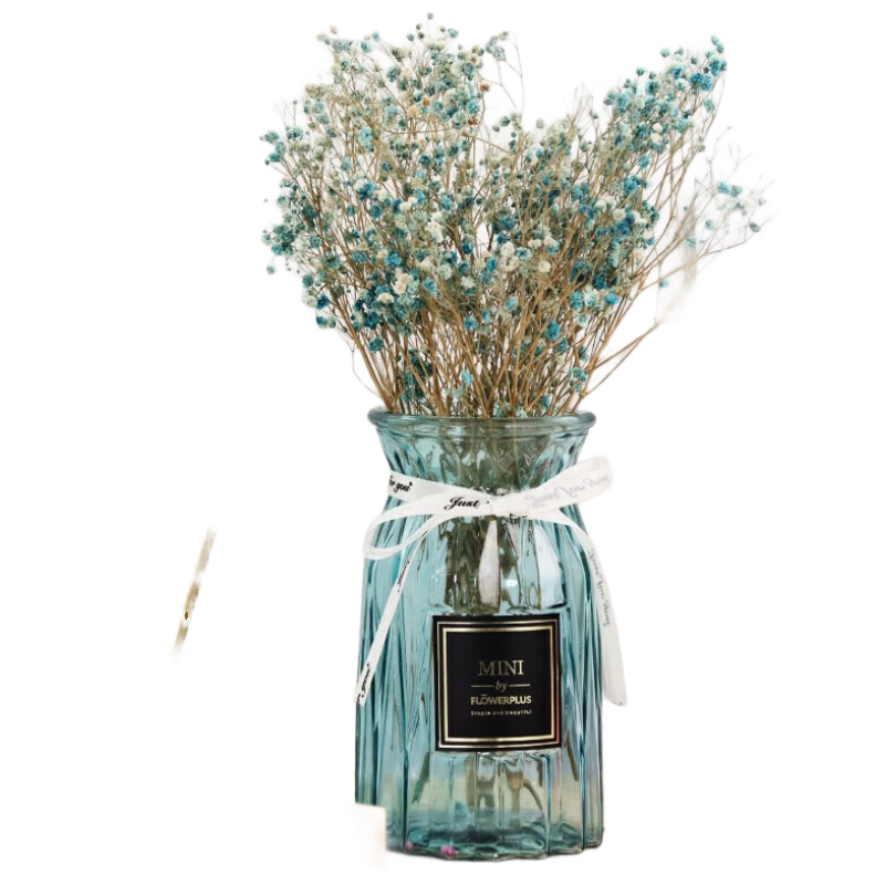 TaTanice 玻璃花瓶 15cm插花瓶干花仿真花水培插花玫瑰百合花富貴竹器客廳擺件藍紫新諾