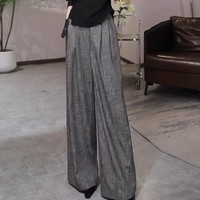 浪莎雙扣西裝褲女秋季加厚新款垂感高腰小個子闊腿褲高級感休閑寬松顯瘦直筒拖地潮流女褲 X059加厚款黑色-雙