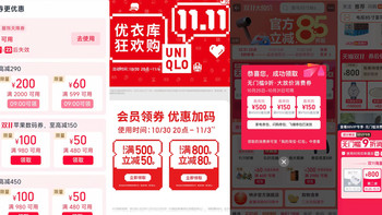 50款優(yōu)衣庫等服飾好價!天貓雙11消費券+服飾券+店鋪券=低至3折起