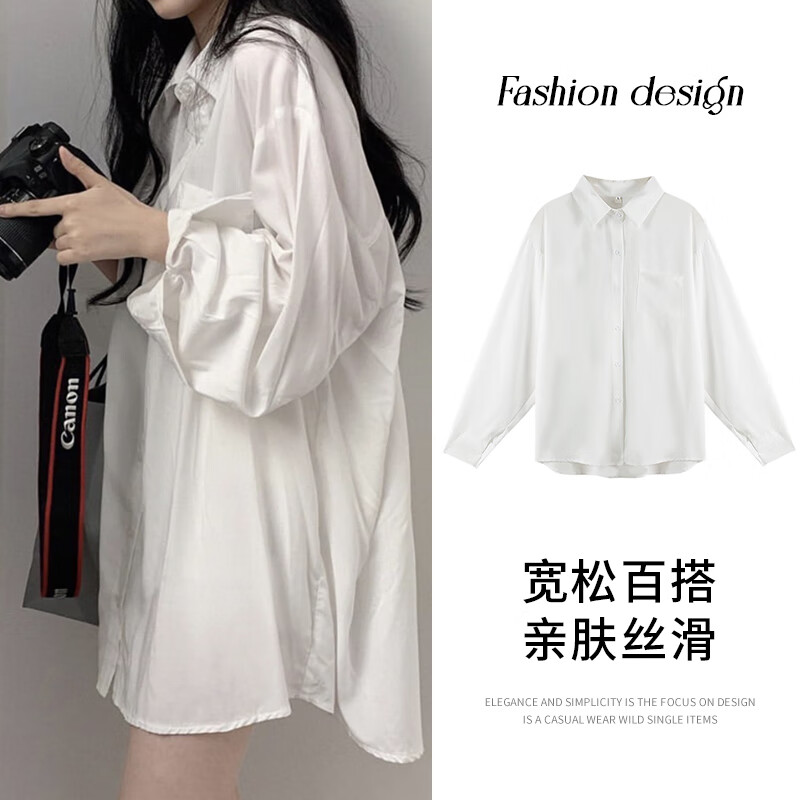 純白色立領(lǐng)襯衫女韓版寬松大碼中長款襯衣春季2022年新款貨歐洲站