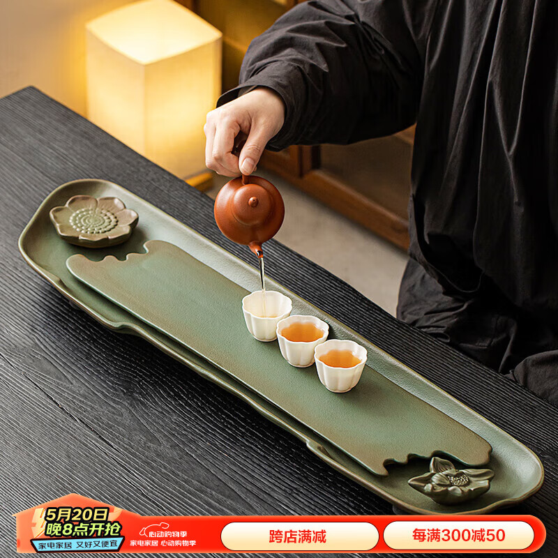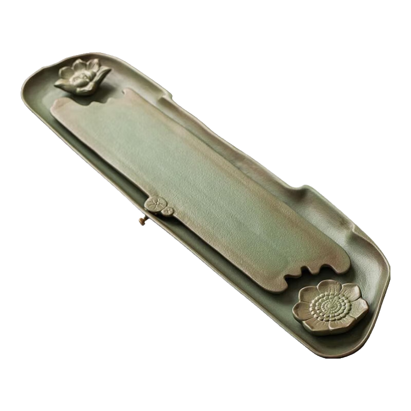 茶盤(pán)是用來(lái)置茶杯的,材質(zhì)廣泛,款式多樣,圓月形、棋盤(pán)形……等等。但不管什么材質(zhì)和式樣,寬、平、淺、白這四個(gè)特點(diǎn)是最重要的。就是盤(pán)面要寬,以便就客人人數(shù)多寡,可以放多幾個(gè)杯。盤(pán)底要平,才不會(huì)使茶杯不穩(wěn),易于搖晃;邊要淺,色要白,這都是為了烘托茶杯、茶壺,使之雅觀。-參考來(lái)源百度百科