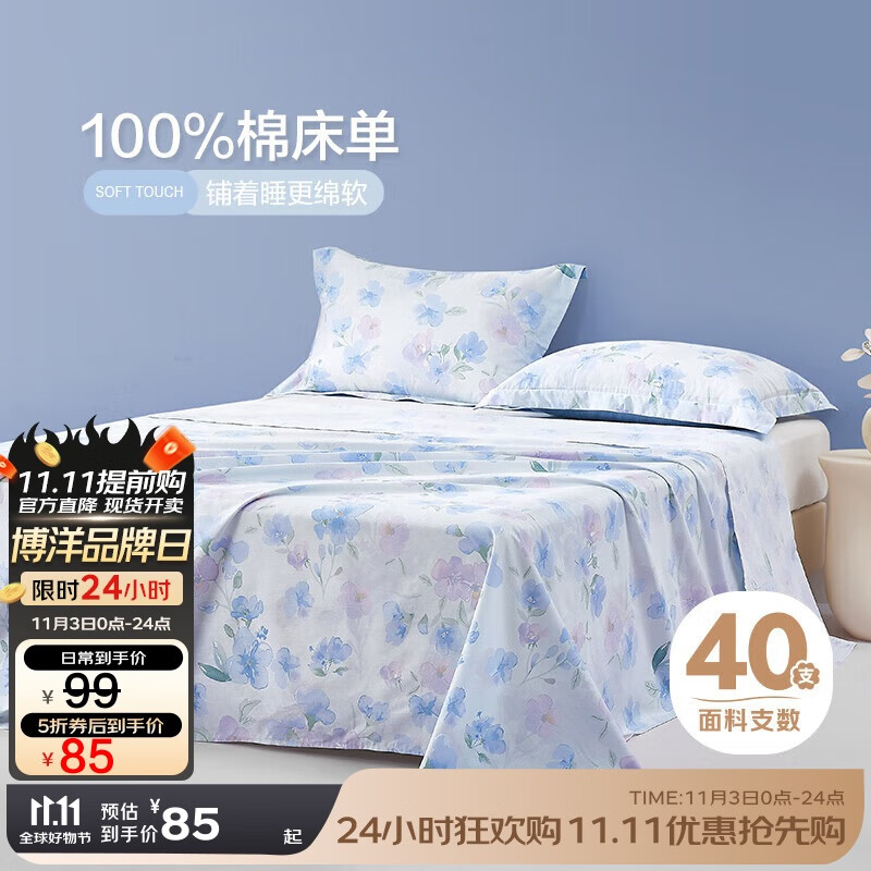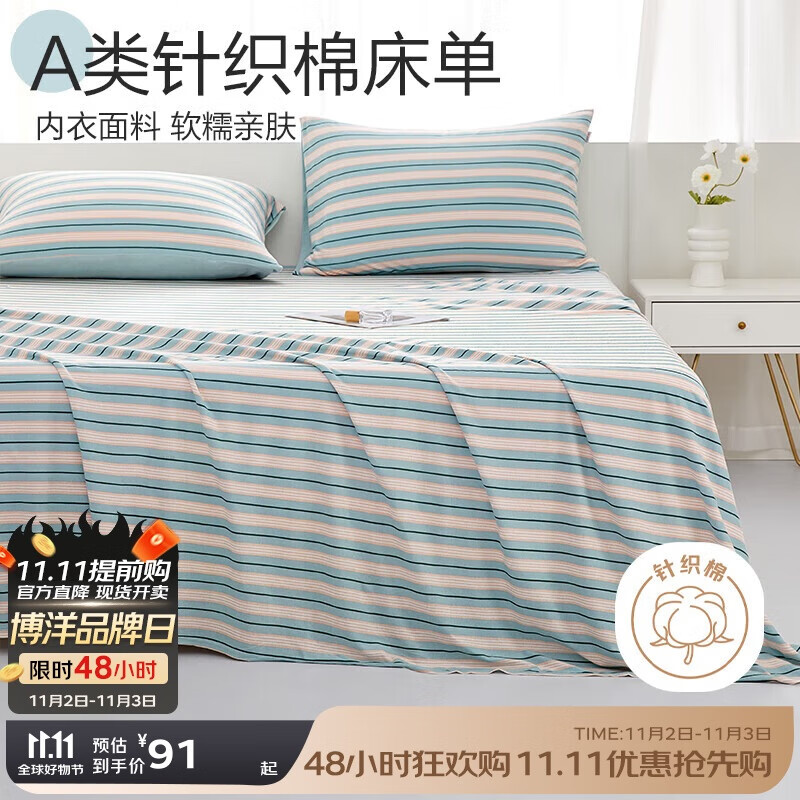 全棉床單單件夏季100純棉水洗棉宿舍單人被單枕套三件套2024新款
