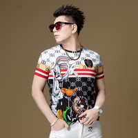 bkmk夏季潮牌趣味簡約圖標印花短袖t恤男學生情侶裝半袖體恤衫ins