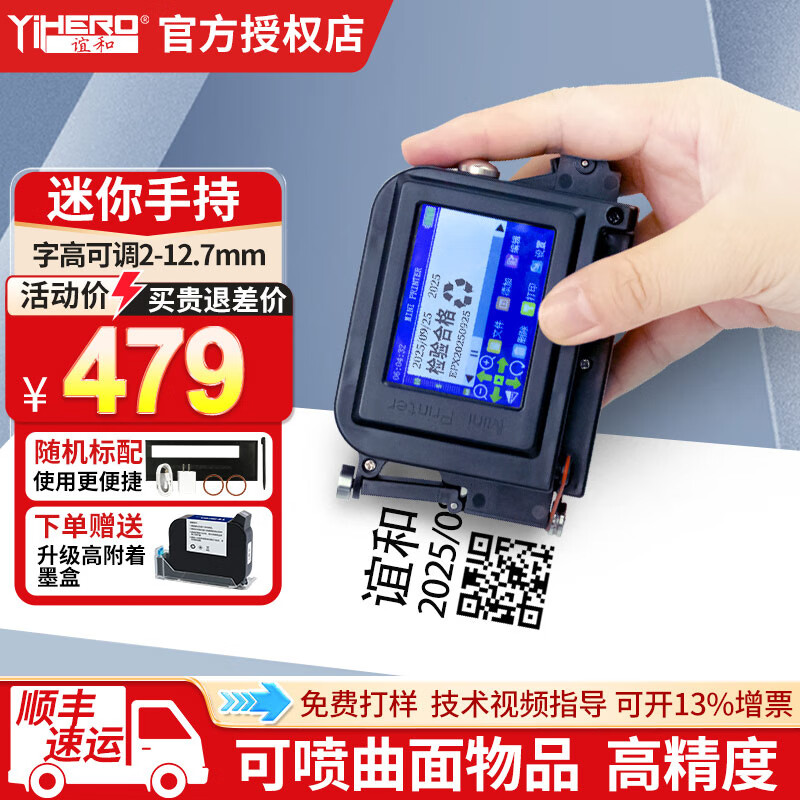 880元誼和手持噴碼機(jī)CH10全自動(dòng)流水線生產(chǎn)日期打印機(jī)CH1A便攜式智能小型紙箱塑料包裝袋條碼二維碼圖標(biāo) CH600字高2-25.4mm【送原裝黑色墨盒】京東 2k