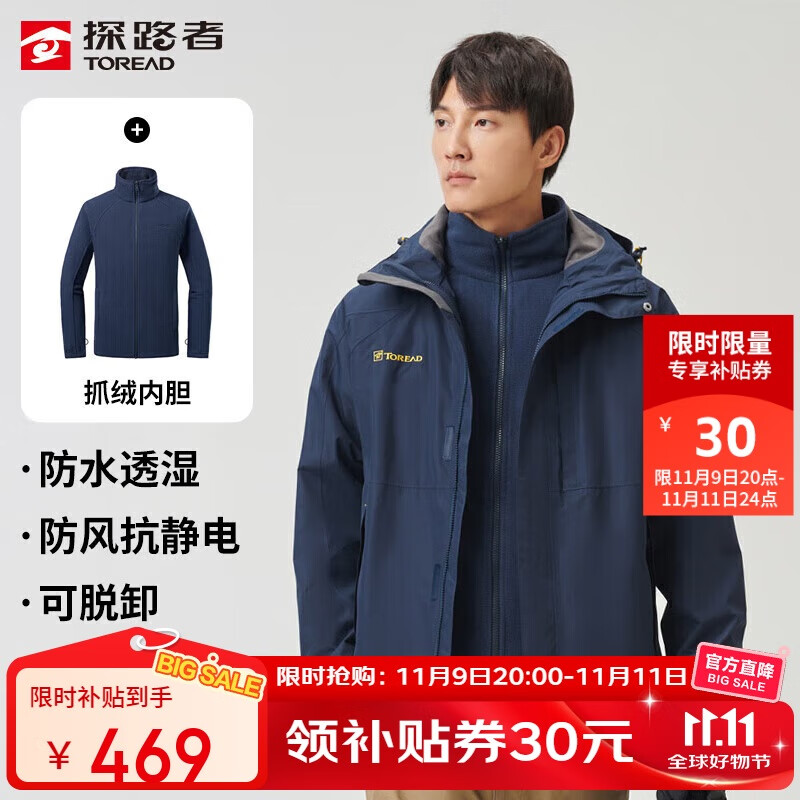 探路者(TOREAD)沖鋒衣22秋冬情侶三合一戶外抓絨可脫卸兩件套防潑水防寒服外... 閱讀全文
