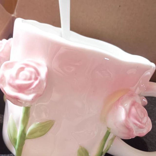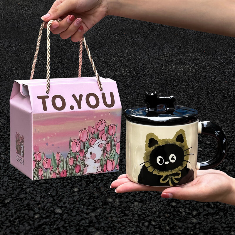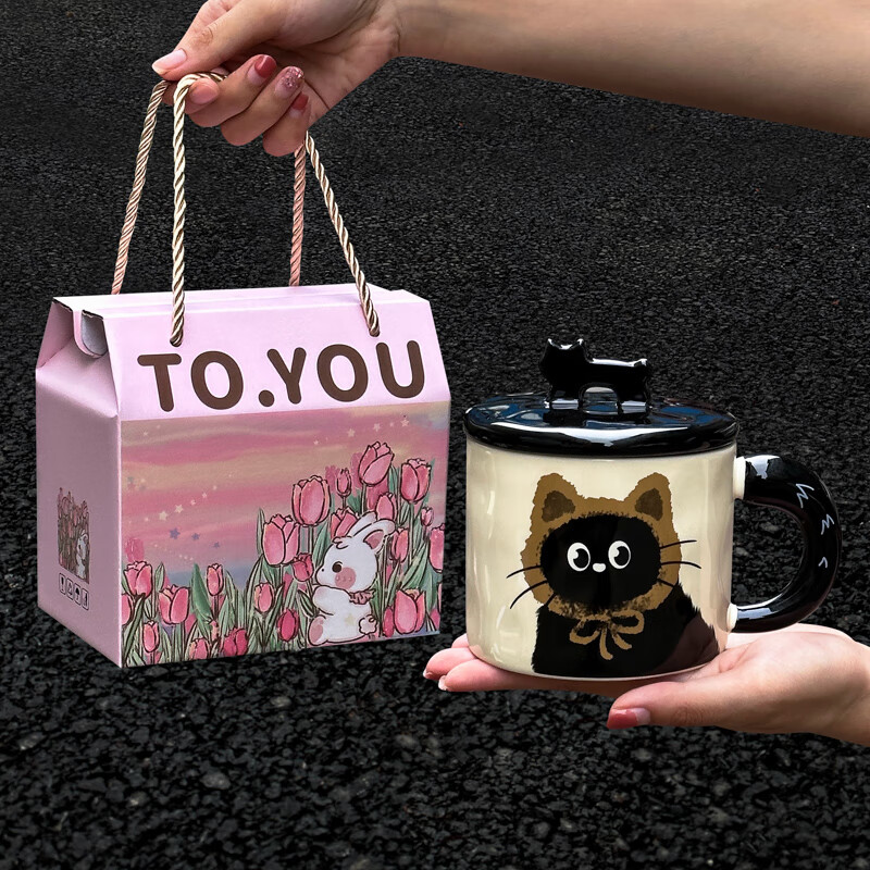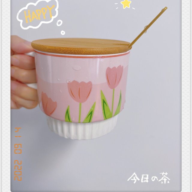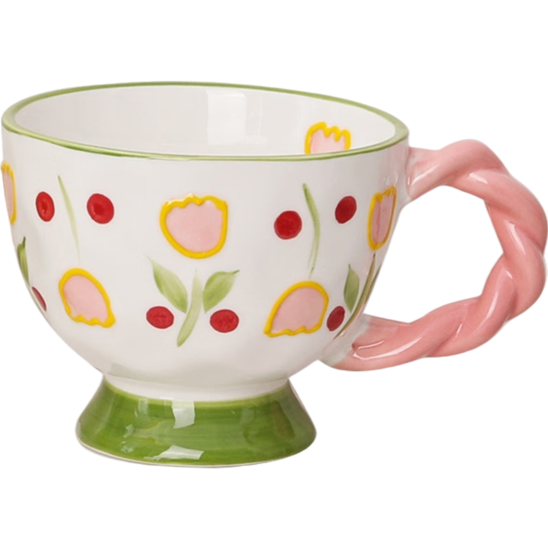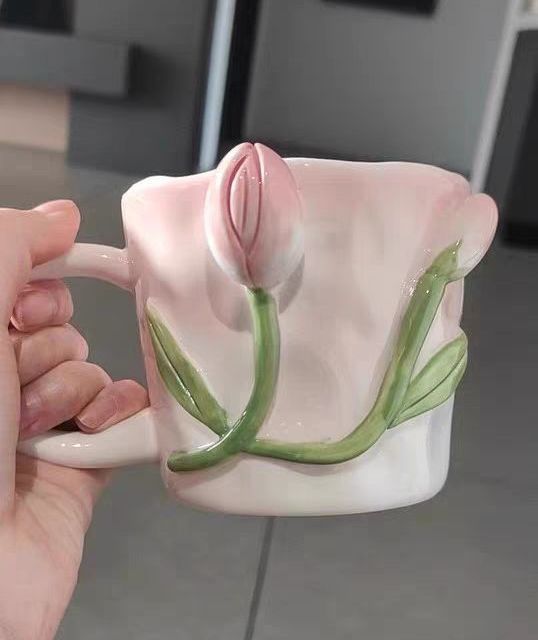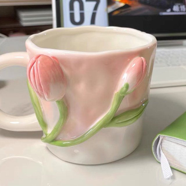 小眾設計感水杯浮雕咖啡杯:適合送給女生的郁金香馬克杯陶瓷杯帶勺杯子套裝