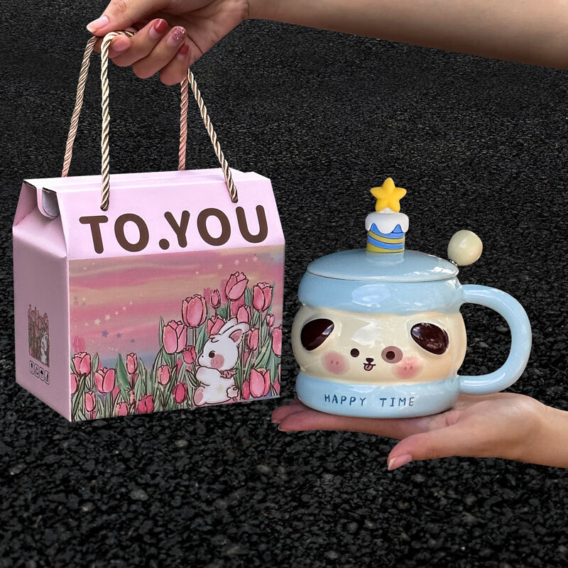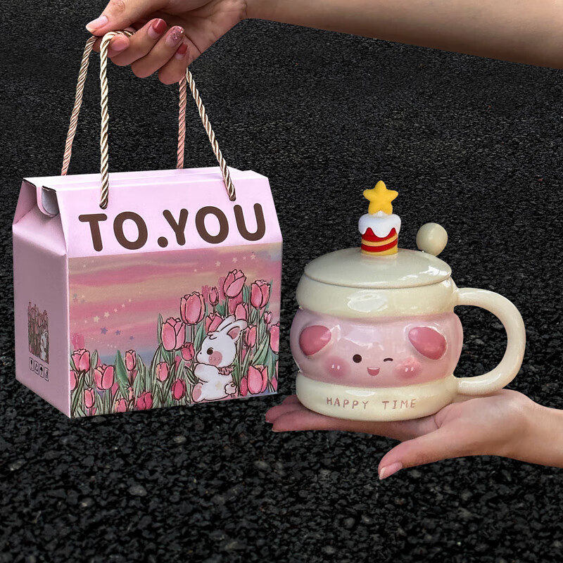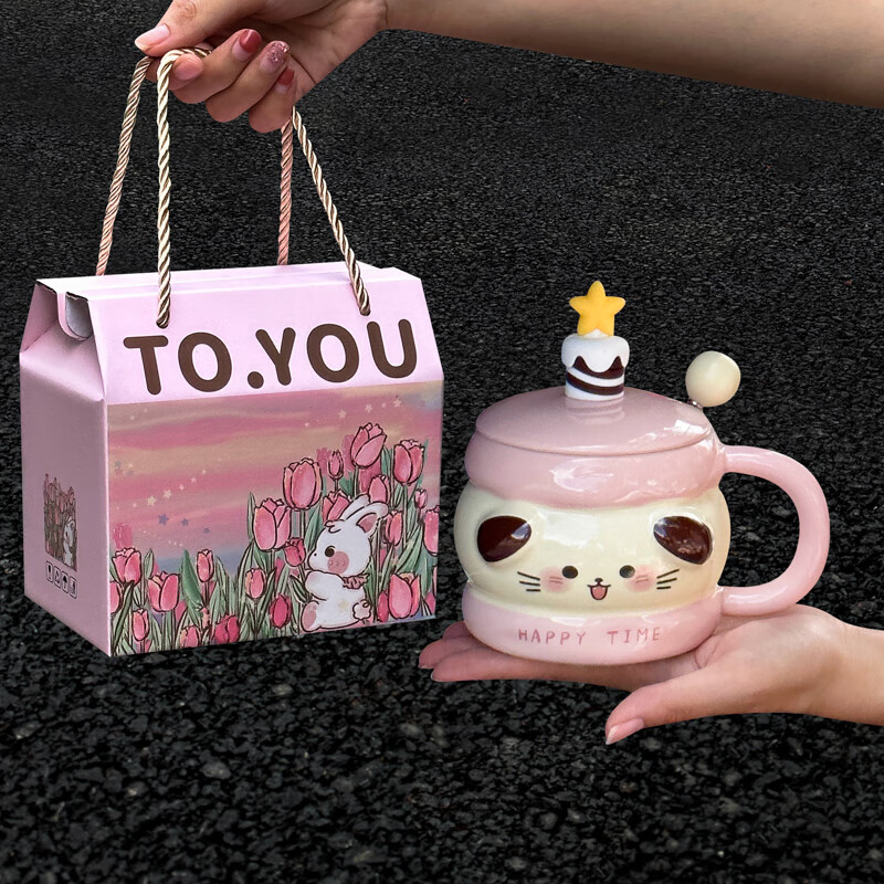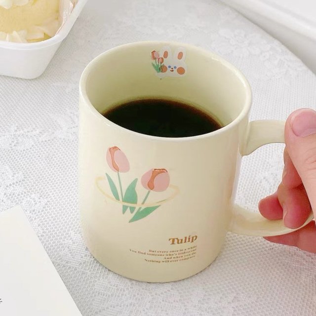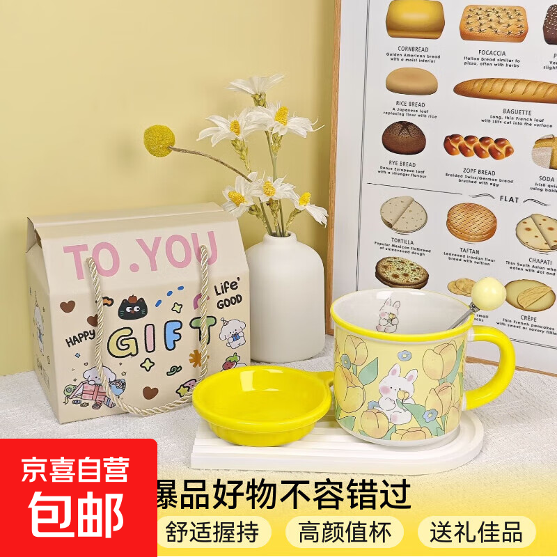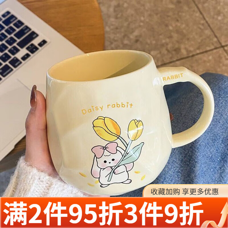 ins風郁金香兔兔陶瓷馬克杯創(chuàng)意胖胖兔早餐杯高顏值咖啡杯意面盤