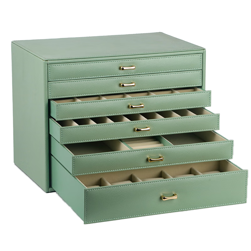 首飾盒用來(lái)放置首飾,可作為收藏首飾、首飾包裝及首飾禮品盒。首飾盒的顏色通常根據(jù)飾物的顏色來(lái)配搭。黃金類首飾,通常配紅色或金色的首飾盒,或者其他暖色調(diào)的也可。鉑金類首飾,就配冷色調(diào)的首飾盒。注:本名詞內(nèi)容引自百度百科。