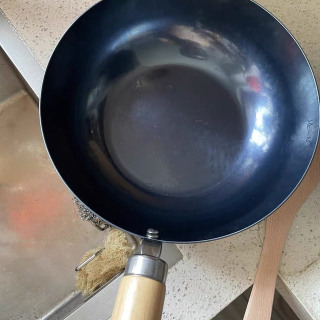老聶家 章丘鐵鍋不粘鍋炒鍋手工老式家用炒菜鍋手打無涂層 32cm藍鍋(已開鍋)