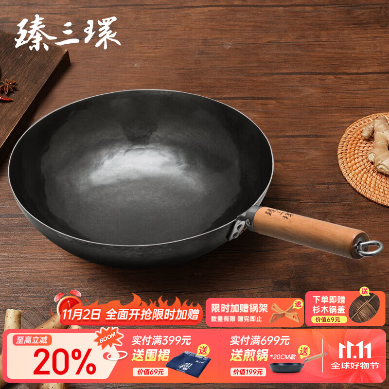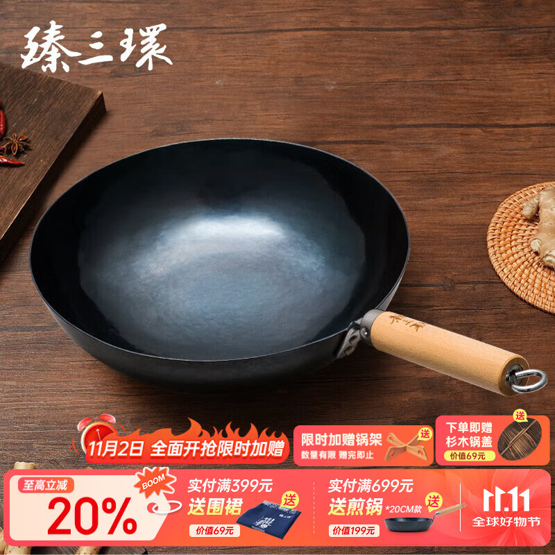 純手工鍛打,無涂層,不粘鍋,這就是火候臻三環(huán)章丘鐵鍋!