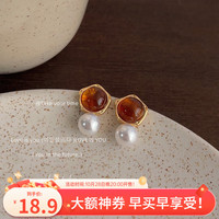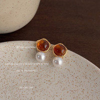 法式vintage復(fù)古港風(fēng)莫奈中古耳夾珍珠耳環(huán)綠色耳釘女氣質(zhì)耳飾品