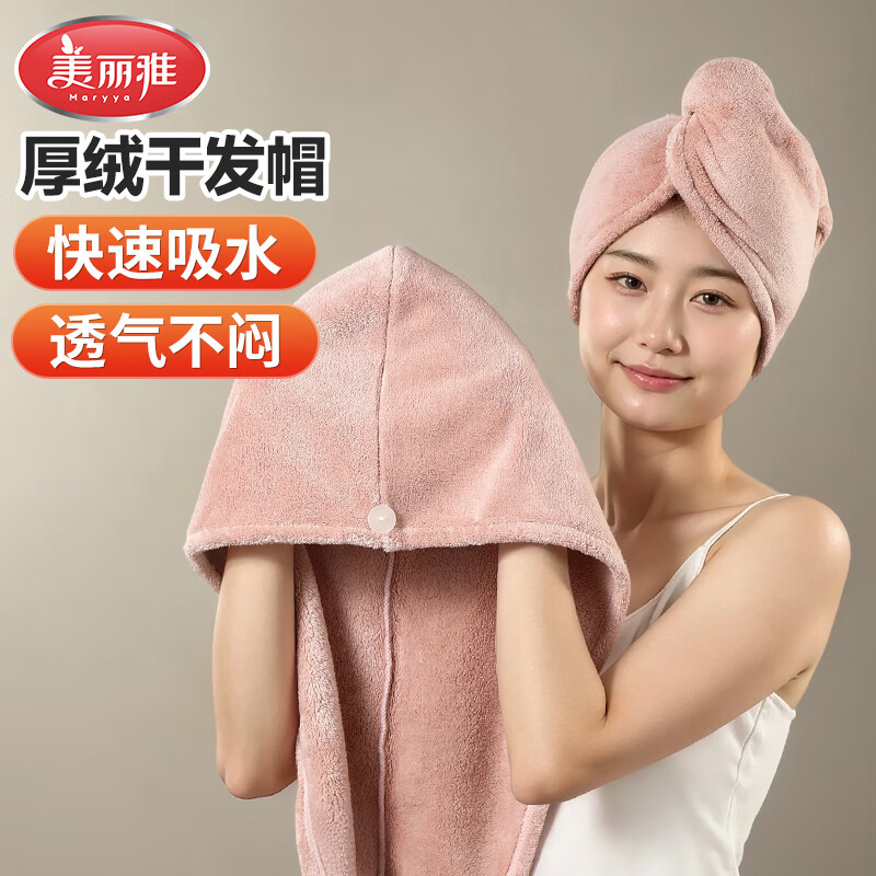 潔麗雅(Grace)干發(fā)帽 柔軟強吸水加厚浴帽雪花絨包頭巾速干擦頭洗頭毛巾 藕粉