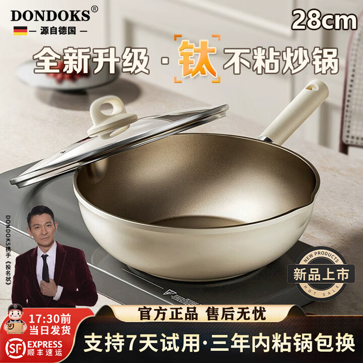 德國(guó)有鈦無(wú)涂層陶瓷不粘鍋炒鍋家用平底炒菜鍋不沾燃?xì)怆姶艩t專用