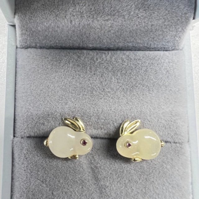 GLTEN【和田玉】玉兔子銀耳釘女兔年本命年圣誕節(jié)生日禮物送女友老婆耳環(huán)女生結(jié)婚紀(jì)念日表白時尚耳飾品 A款