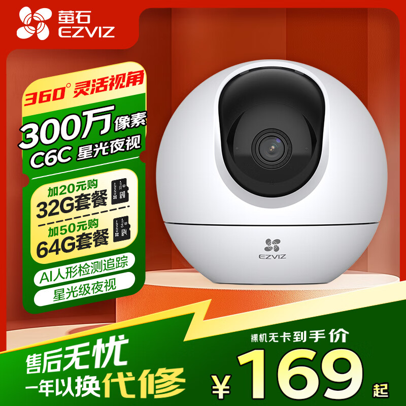 螢石C6WI智能AI攝像頭4K無線手機(jī)遠(yuǎn)程高清夜視家用360度全景監(jiān)控