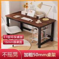 木以成居電腦桌臺(tái)式鋼木書桌書架收納現(xiàn)代簡(jiǎn)約學(xué)習(xí)桌子 淺胡桃色