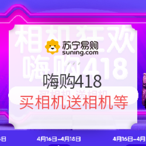 買相機(jī)送相機(jī)、多款優(yōu)惠券可領(lǐng),最高-800、每日10點尼康相機(jī)4.18秒殺。蘇寧易購嗨購418相機(jī)數(shù)碼專場正式開啟,活動期間勁享多重優(yōu)惠。優(yōu)惠券方面,8款優(yōu)惠券可選,最高優(yōu)惠為10000-800,最低為15元無門檻優(yōu)惠券,同時有12期免息券和以舊換新券可搶;買相機(jī)送相機(jī),購買佳能M50贈送尼康A(chǔ)10數(shù)碼相機(jī);同時以舊換新可享受限時加價與返現(xiàn)紅包,在蘇寧購買自營相機(jī)可享受30天內(nèi)退貨,180天內(nèi)同款置換服務(wù),喜歡的值友可以關(guān)注一下~買相機(jī)送相機(jī):10點秒殺:優(yōu)惠券類別:以舊換新&30180延保:以下為爆款推薦:索尼(SONY)ILCE-5100L 數(shù)碼微單相機(jī)(黑)16-50mm單鏡頭 2430萬有效像素2798送價值129元原裝包+90元16G內(nèi)存卡,4D對焦,蘇寧易購去購買佳能(Canon) EOS 6D Mark II 數(shù)碼單反相機(jī)套機(jī)(EF 24-70mm )單鏡頭套裝14788全畫幅高性價比-約2620萬像素-60P全高清短片-Wi-Fi/NFC/藍(lán)牙-6D2套機(jī);可用800元優(yōu)惠券蘇寧易購去購買索尼(SONY) ILCE-6000L/a6000 微單套機(jī) (16-50mm) A6000L白色3588索尼a6000套裝+原裝包+16G原裝卡,一站搞定;4D對焦快速精準(zhǔn);蘇寧易購去購買索尼(SONY) ILCE-7RM3+2470Z KIT全畫幅微單相機(jī) FE 24-70mm F4鏡頭套裝271997RM2系列升級,2470鏡頭套裝,4240萬有效像素,4KHDR視頻,15級寬廣動態(tài)范圍,可用800元優(yōu)惠券蘇寧易購去購買尼康(Nikon) D3400 單反套機(jī)(AFP DX 18-55mm/3.5-5.6G VR)入門數(shù)碼單反相機(jī)2649入門就足夠驚艷你;小巧而不缺大氣。約2,416萬有效像素,高清畫質(zhì),入門性價比之選!可用200元優(yōu)惠券蘇寧易購去購買